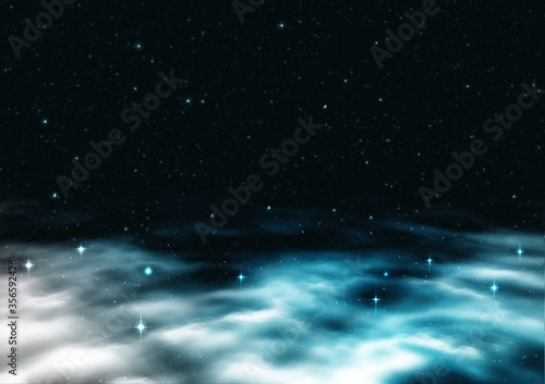 Obraz premium 星空と白く光る星雲(ホワイト&グリーン)