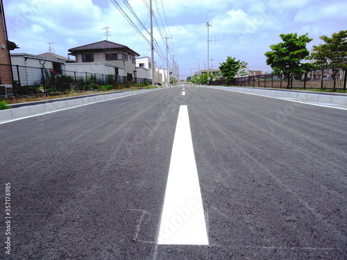 Naklejka premium 新興住宅地の供用開始前の新しい道路風景