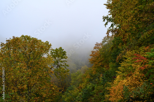 © Kunikazu Watanabe, Fototapeta premium 雨雲に覆われる山地の秋