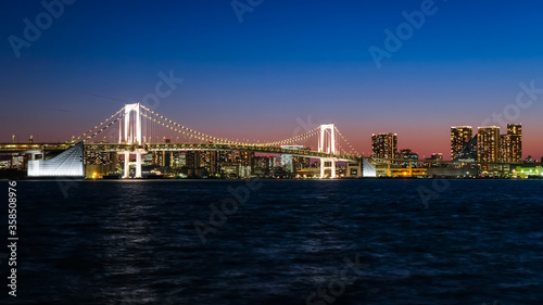 Naklejka premium 東京 豊洲ぐるりパークから見るレインボーブリッジの夜景
