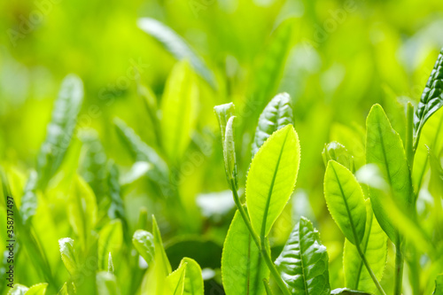 Obraz premium 新緑の茶畑 一番茶 新茶 京都府和束町