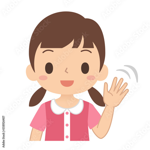 © YKC, Obraz premium 笑顔で手を振って挨拶する女の子