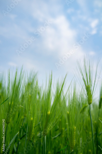Obraz premium 푸른하늘아래 청보리밭 풍경