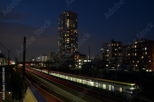 Obraz premium 鶴見夜景 神奈川 鶴見駅 鶴見市 動き出す回送電車