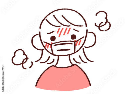 Obraz premium 暑さで辛そうなマスク姿の若い女性