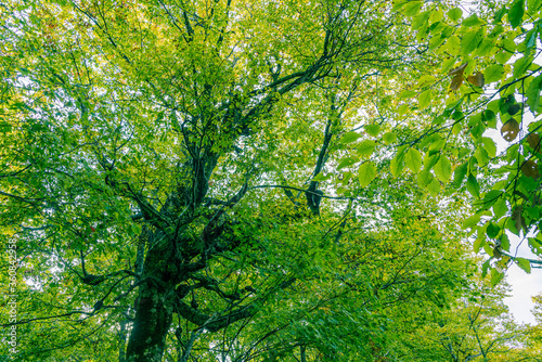 © tetsusan, Obraz premium 紅葉に染まる大きなブナの木