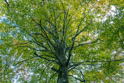 © tetsusan, Obraz premium 紅葉に染まる大きなブナの木