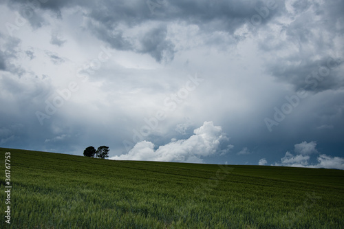 Obraz premium 雨雲と美瑛親子の木の麦畑