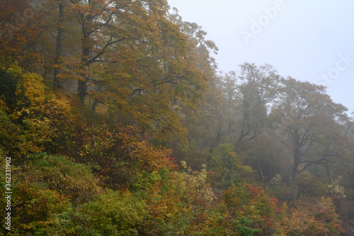 © Kunikazu Watanabe, Fototapeta premium 雨雲に覆われる山地の秋