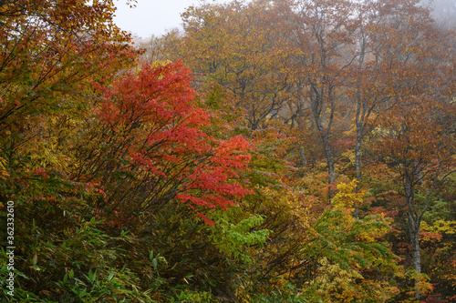 © Kunikazu Watanabe, Fototapeta premium 雨雲に覆われる山地の秋