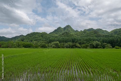 Obraz premium 南会津・舘岩地区の水田と里山(八総佐倉山)