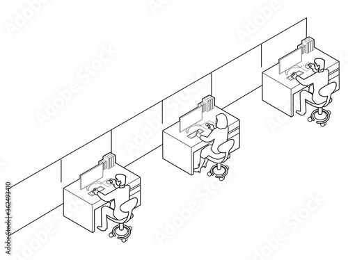 Obraz premium ソーシャルディスタンスな職場-ウイルス対策