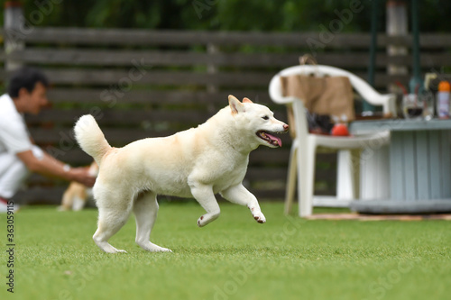 Obraz premium ドッグランで遊ぶ白毛の柴犬