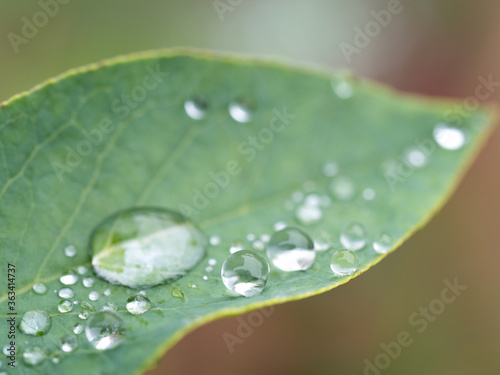 © moonrise, Fototapeta premium 葉に残った雨つぶ
