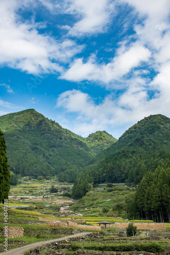 © ritsuki, Fototapeta premium 四谷の千枚田 稲干し(稲木)