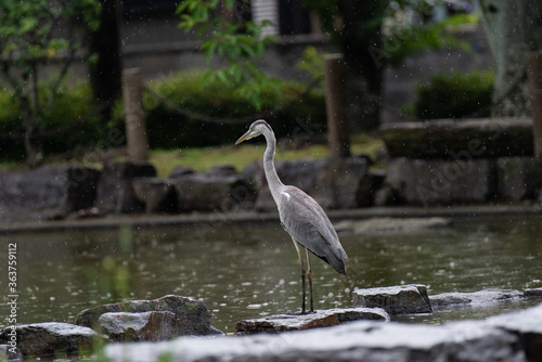 © rai, Naklejka premium 公園に降り立った野鳥 アオサギ