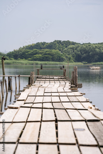 Obraz premium 桟橋のある沼の風景 群馬県 館林市 多々良沼 2020