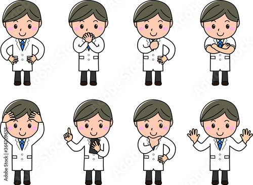 © うた♪くま, Obraz premium 男の子03_04(笑顔の若い男性・白衣でいろんなポーズセット)
