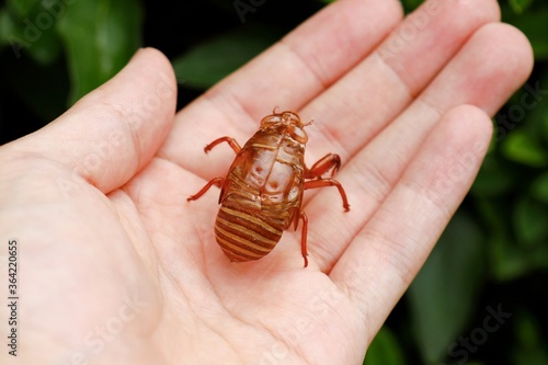 Fototapeta premium クマゼミの抜け殻 手のひらの上