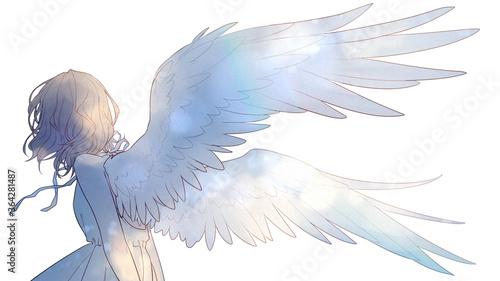 Obraz premium 翼の生えた女の子のイラスト 天使 ファンタジー