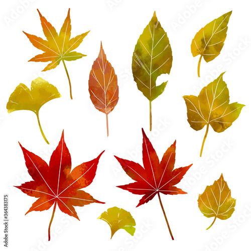 © さっこ, Fototapeta premium 秋の紅葉の葉っぱのイラスト素材(濃いめ線なし)