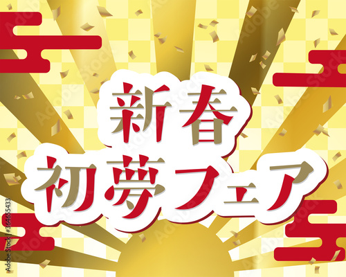 Fototapeta premium おめでたい和風背景素材に新春初夢フェアの文字