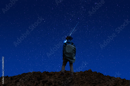 Obraz premium 流れ星と登山