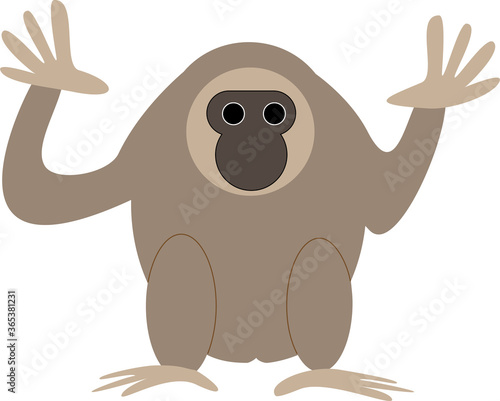 Fototapeta premium 手を広げて、手を振っている可愛いおしゃれな若い赤ちゃんテナガザルのベクターイラスト