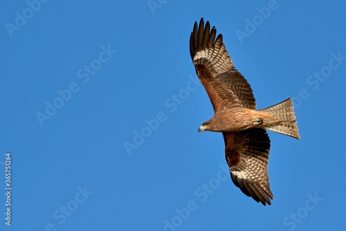 Obraz premium 青空バックに頭上を悠然と飛ぶトビ