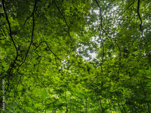 Fototapeta premium 鳥取県 木谷沢渓流 渓流沿いの緑豊かな林
