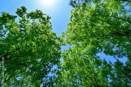 © Scott Mirror, Obraz premium 青空バックに見上げるメタセコイヤの若葉