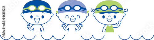 © pudding, Fototapeta premium スイミングする三人の子供達2色