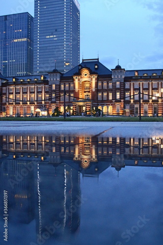 © 詠人 岡田, Obraz premium 水溜まりに映る東京駅