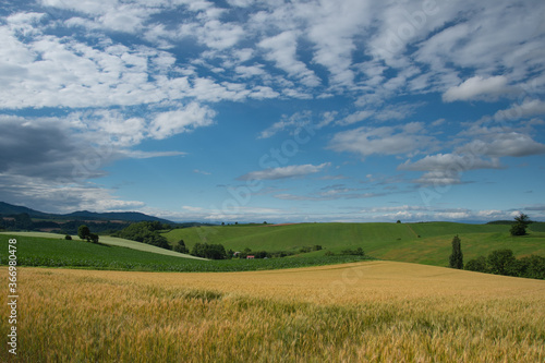 Obraz premium 美瑛の素敵な雲たちのある夏の風景
