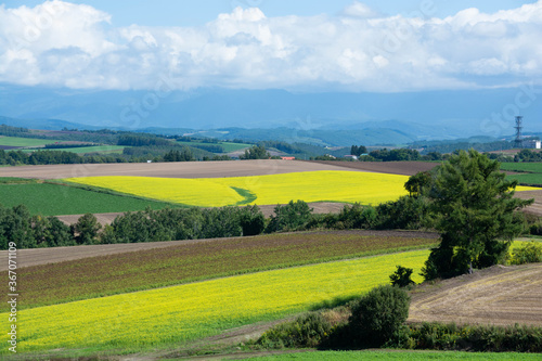 Obraz premium 畑作地帯に広がるナノハナ畑