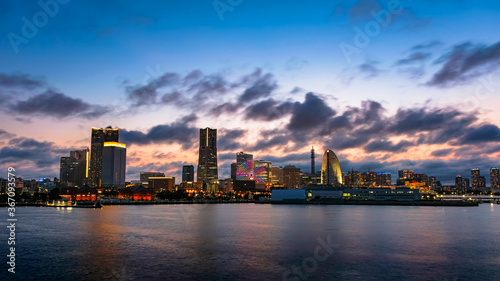 Naklejka premium 横浜 大桟橋ふ頭から見るみなとみらいの夕暮れ