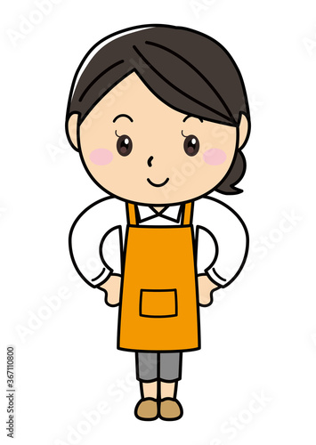© うた♪くま, Obraz premium 女の子01_21(エプロン姿でポーズをとる笑顔の女性シリーズ)