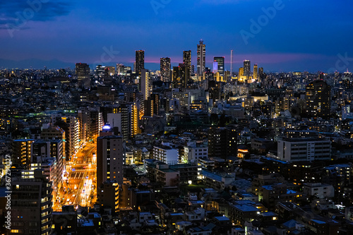 Obraz premium 東京 文京シビックセンター 展望ラウンジからの景色 池袋方面 曇天の夜景