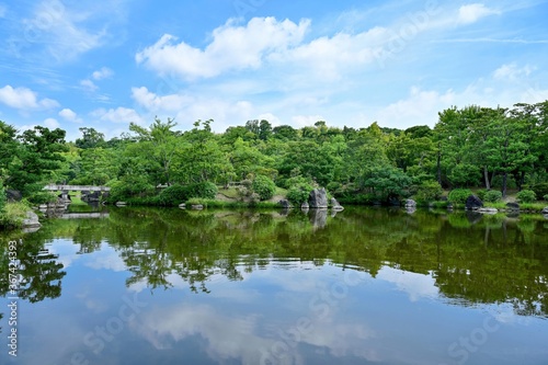 © Scott Mirror, Obraz premium 青空バックに新緑に包まれた日本庭園の情景@大阪