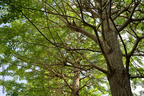 Fototapeta premium 若い葉をつけ始めたイチョウの大木