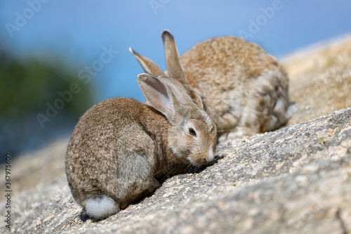 © photojapan, Fototapeta premium 野生の親子ウサギ -うさぎの楽園 大久野島-