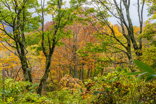 Obraz premium 紅葉に染まるブナの森