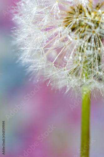 Fototapeta premium タンポポの綿毛と水滴 映り込み