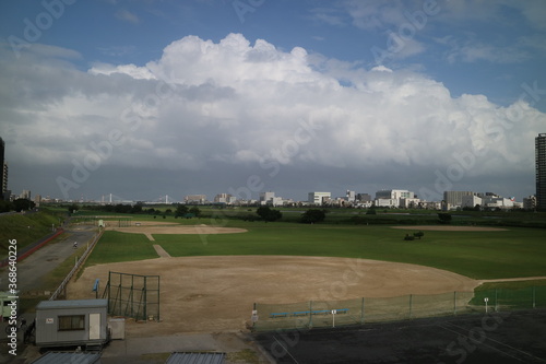 © acchity, Obraz premium 東京都多摩川の河川敷の風景