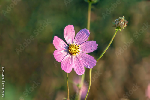 Obraz premium 朝の陽光を浴びるコスモスの雫