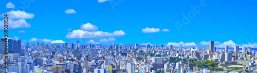 © 7maru, Fototapeta premium 大阪府天王寺から中央区方向の景色(パノラマ)
