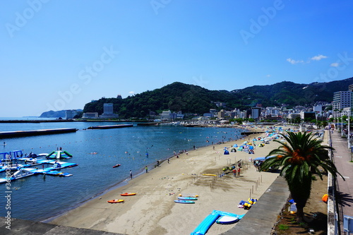 Obraz premium 多くの海水浴客が訪れる熱海サンビーチ海水浴場