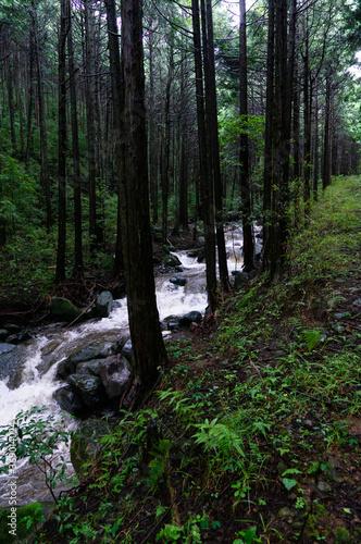 © Kazuki Yamada, Fototapeta premium 豪雨で増水した川の上流域
