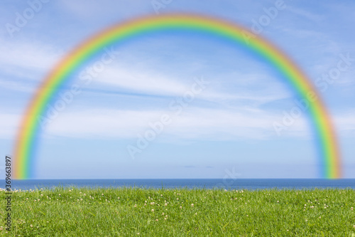 © imacoconut, Naklejka premium 青空と虹の風景 背景素材