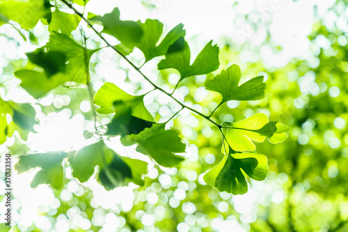 Fototapeta premium 太陽の光が当たる新緑の木